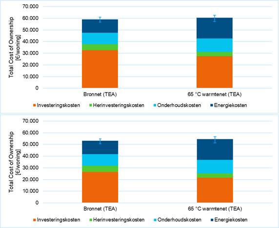 - Voordeel is dat de aanleg van het bronnet simpeler en goedkoper is dan van een 60°C warmtenet.